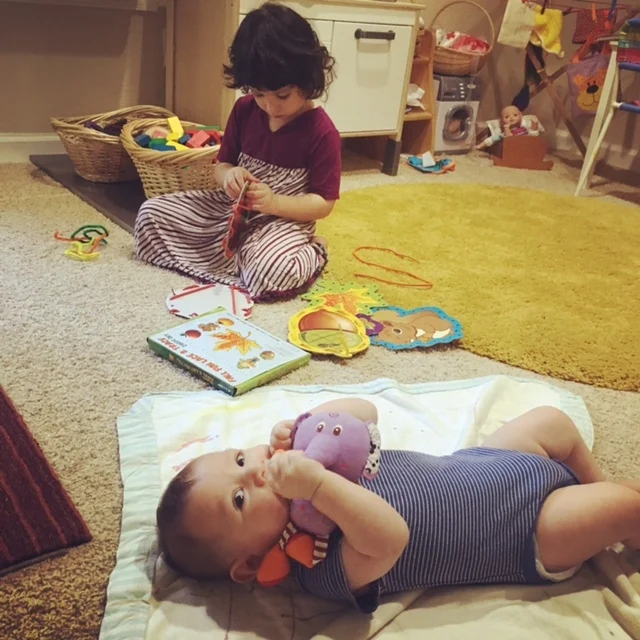 If you’d like, you can lay your baby down on her back, or if your baby is crawling, watch what she can do (and resist the inkling we all have to “teach!”). There is so much magic in being in the present with our children, and it changes day by day.
